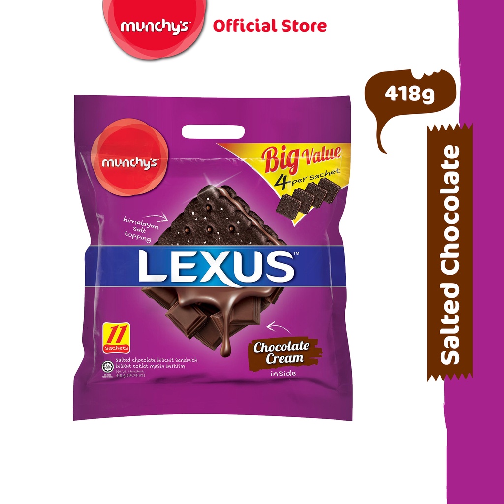 Both Lexus and Oat Krunch cant be located at Cold Storage but they are certainly sold aplenty at other local supermarkets like Fair Price for approximately S230 and S295 respectively. For example we used to import Lexus biscuit from Malaysia but now Danish Foods makes the same product with the same quality he says. Munchys Munchys LEXUS Salted Chocolate Sandwich Biscuit 418g Value Pack 11 Sachets RM 903.